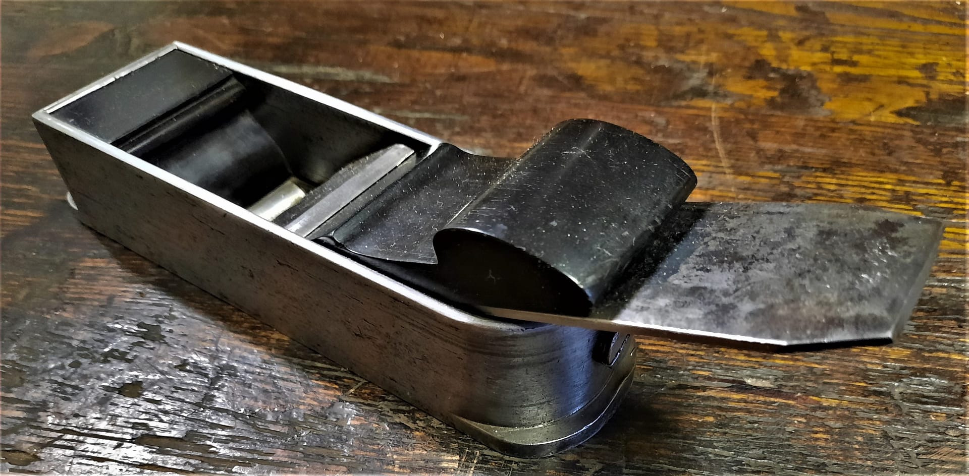 Fletcher Leader St. Chelsea 1 1/4″ iron found in unmarked thumb plane, circa 1910 with Norris characteristics. Tooltique.co.uk