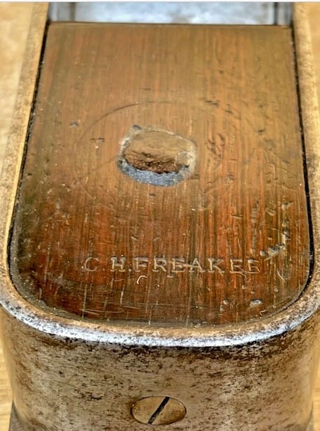Fenn’s Lever cap was patented in 1844, and this Towell mitre could have been made as late as 1863. But since Towell’s dual handled mitre plane with lever cap had a pre-1843 Ward iron, this suggests Towell was utilizing the lever cap concept in the late 1830s/early 1840s.
