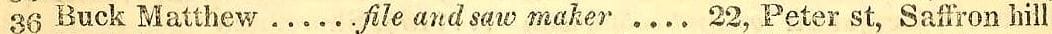 Matthew Buck became a saw and filemaker who worked out of 22 Peter Street, Clerkenwell from before 1807, until after 1833. Even though Matthew remained a modest tradesman to the end of his life, all of his progeny who ran Buck retail stores called themselves “saw & filemakers.”