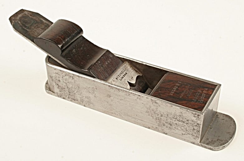 Making a special order, or unique plane for a product that was to be purchased, or bought-in, wholesale to the trade, was highly unusual, but not unprecedented. Much earlier, in the 1850s and early ’60s, Mathieson sold a limited run of Improved Mitre Planes, with a unique rounded infill, while the metalwork was virtually identical to that of the Spiers Improved Mitre Planes of that period.