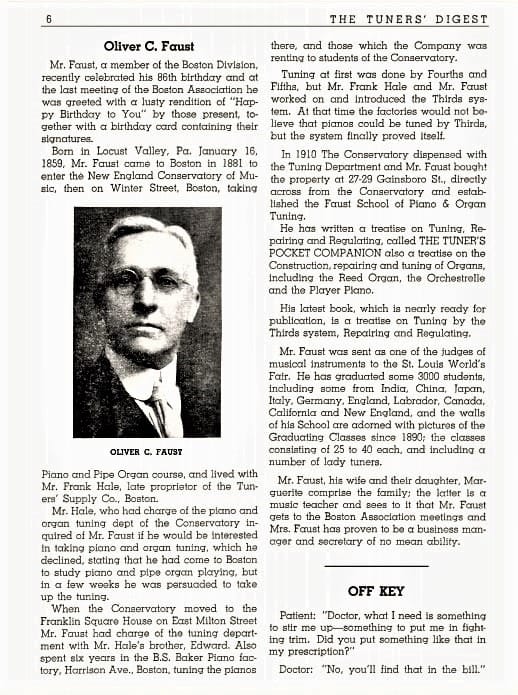 Oliver C. Faust, in “The Tuners Digest, April 1945.