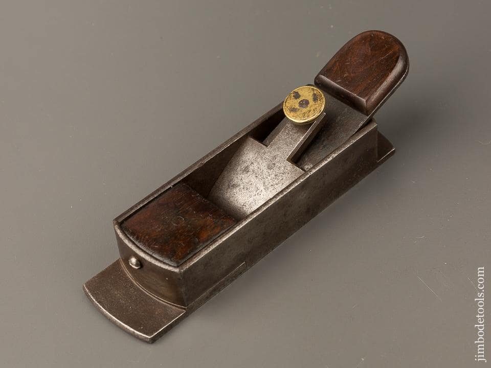Thorested mitre plane. 9 inches long, with a 2 inch Buck Bros. iron. Lever cap screw inscribed “G. Thorested 5 Hamersley St. NY.”