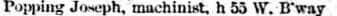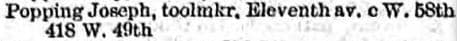 Joseph Popping, N.E. Corner 11th Ave. & 58th St. <1884-1894>; 806 11th Ave. <1897-1902.