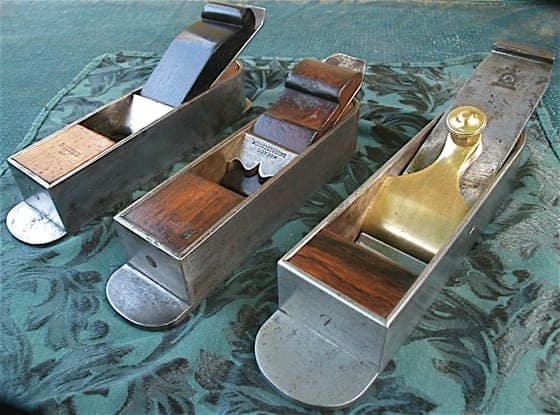 Three dovetailed steel English box mitre planes: